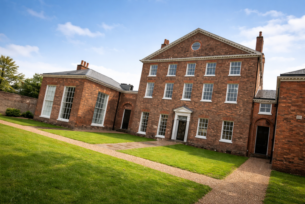 Repair of Grade 1 Listed Georgian house in very poor condition, conversion to office use by international aeronautics firm and design of annexes within the grounds.